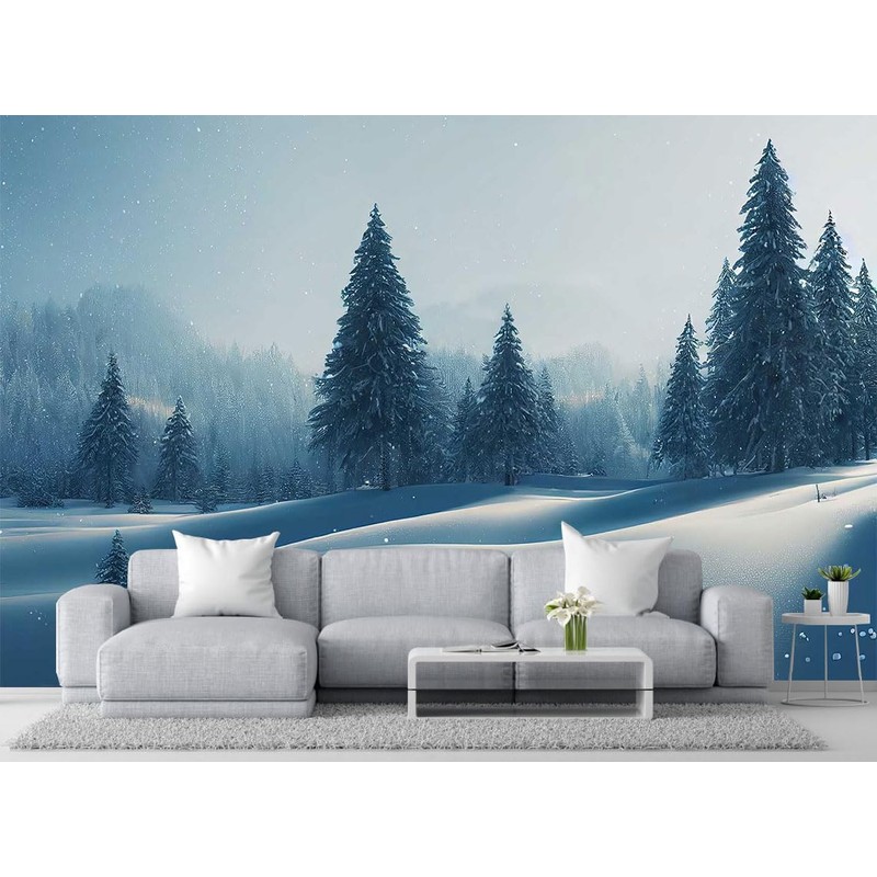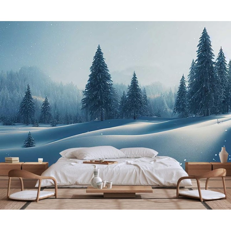 Wmjurel Hazy Winter Snowy Background with fir Trees Covered in Snow Large Wallpaper for Bedroom Wall murals(Non-self-Adhesive)