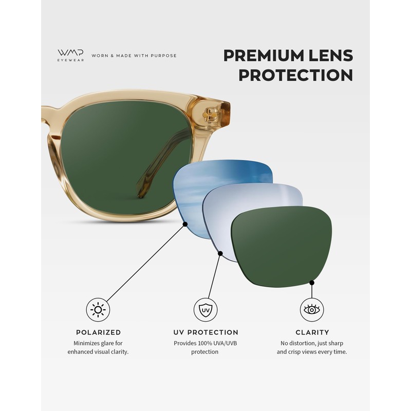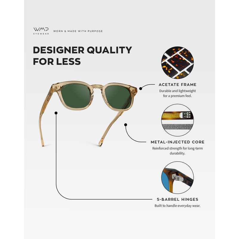 WMP Eyewear - Men's Retro Keyhole Polarized Square Sunglasses, Premium Acetate Frame with Modern Classic Design (Crystal Champagne/Smoke Green Lens)