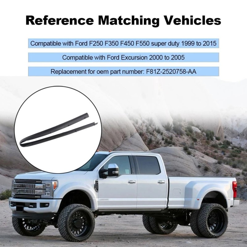 Compatible with car door seal strip Ford F250 F350 F450 F550 super duty 1999 to 2015, compatible with cab weather strip Ford Excursion 2000 to 2005. For more detailed models, please refer to the detailed description