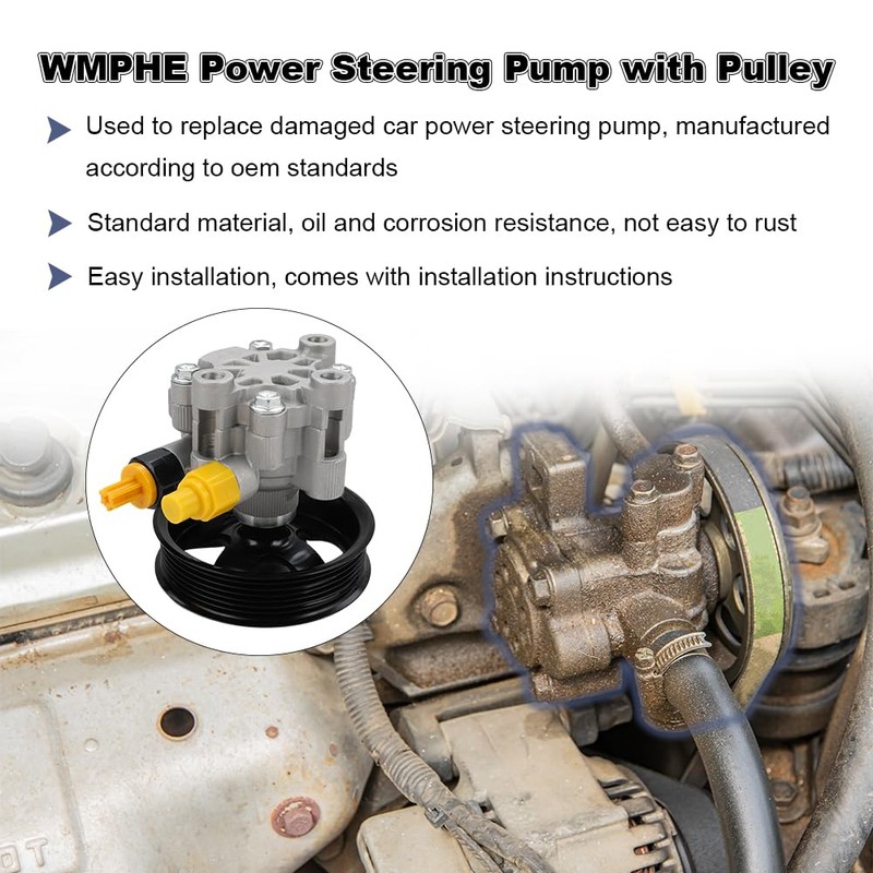 WMPHE Power Steering Pump with Pulley Compatible with Toyota Tacoma 4.0L V6 2005 to 2015, Compatible with Lexus RX350 3.5L V6 2007 to 2009, Replacement for 21-5447, 4431004130