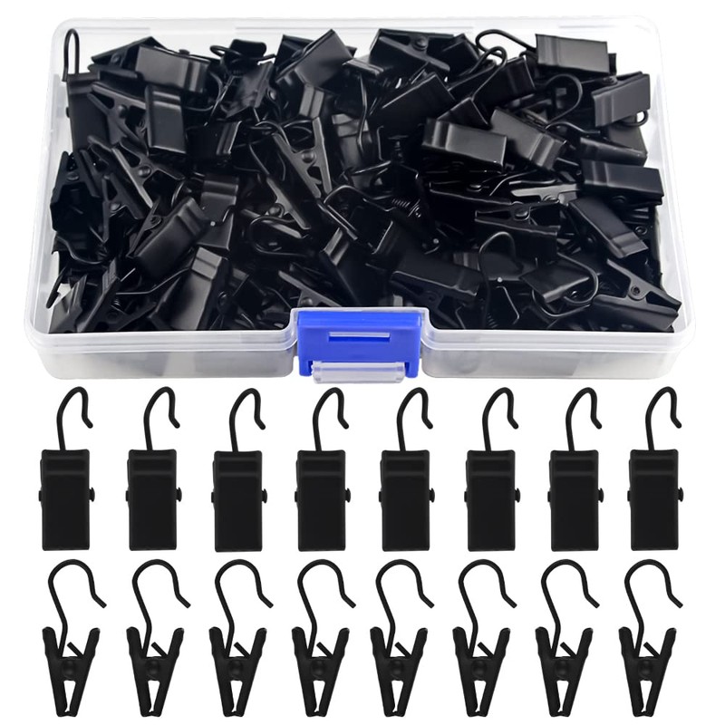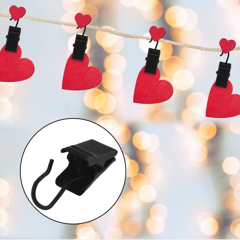 WMYCONGCONG 100 PCS Curtain Clips with Hooks, Small Heavy-Duty Hook Clip String Party Lights Hanger Wire Holder for Curtain Photos Home Decoration Shower Drapery Art Craft Display (Black)