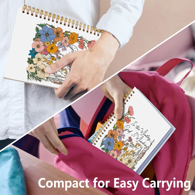 WNAGT Wildflower Christian Spiral Notebook Journal 5.5x8.3, Bible Verse Journal, Christian Religious Gifts for Women, in the Waiting God Is Working Scripture Journaling Notebooks