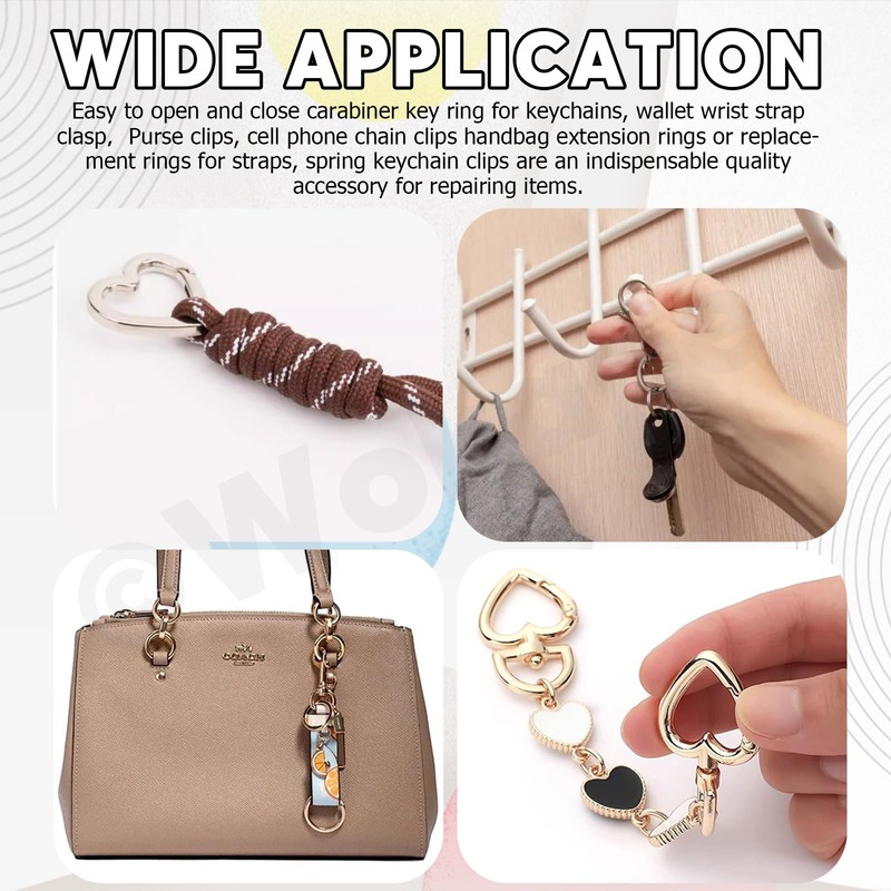 - 【Wide Uses】: These trigger spring carabiners are incredibly useful in many situations. You can use them as keyring rings, rings for keychains, Purse clips, cell phone chain clips handbag extension rings and more. Keyrings are also great for repairing items, serving as replacement rings for straps or clasps for wallet wrist straps. 【Tips: Avoid using them for overly strenuous sports like mountaineering or rock climbing】