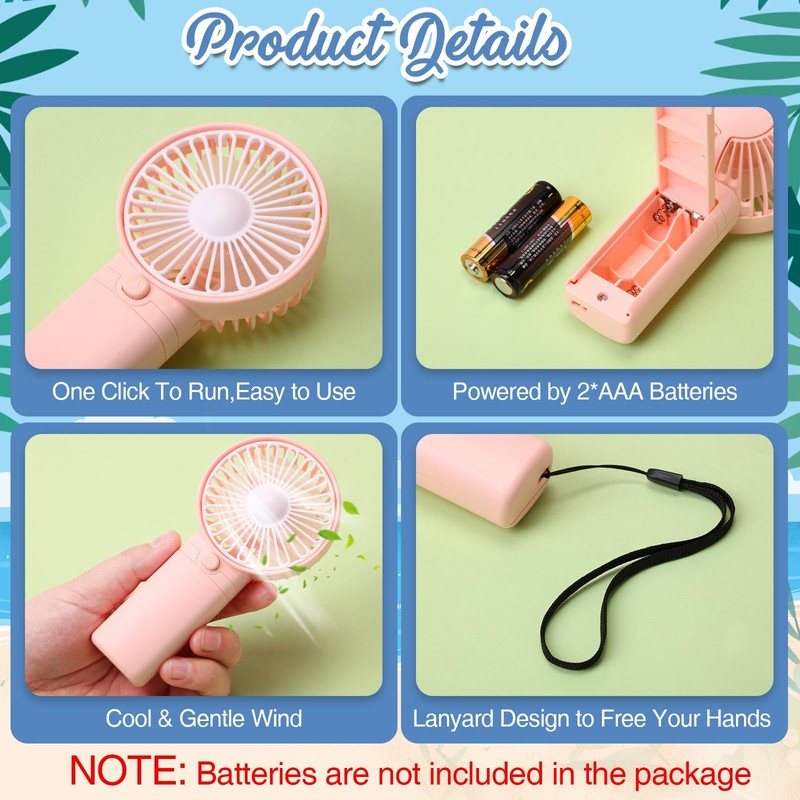• Powered by Batteries: never run out of cool breeze with our fans; Each fan is powered by 2pcs AAA batteries (excluded in the package), ensuring a long lasting and relentless performance; Just a simple battery replacement and your constant companion is ready to keep you chilled; Don't break a sweat when you have this cooling army by your side
