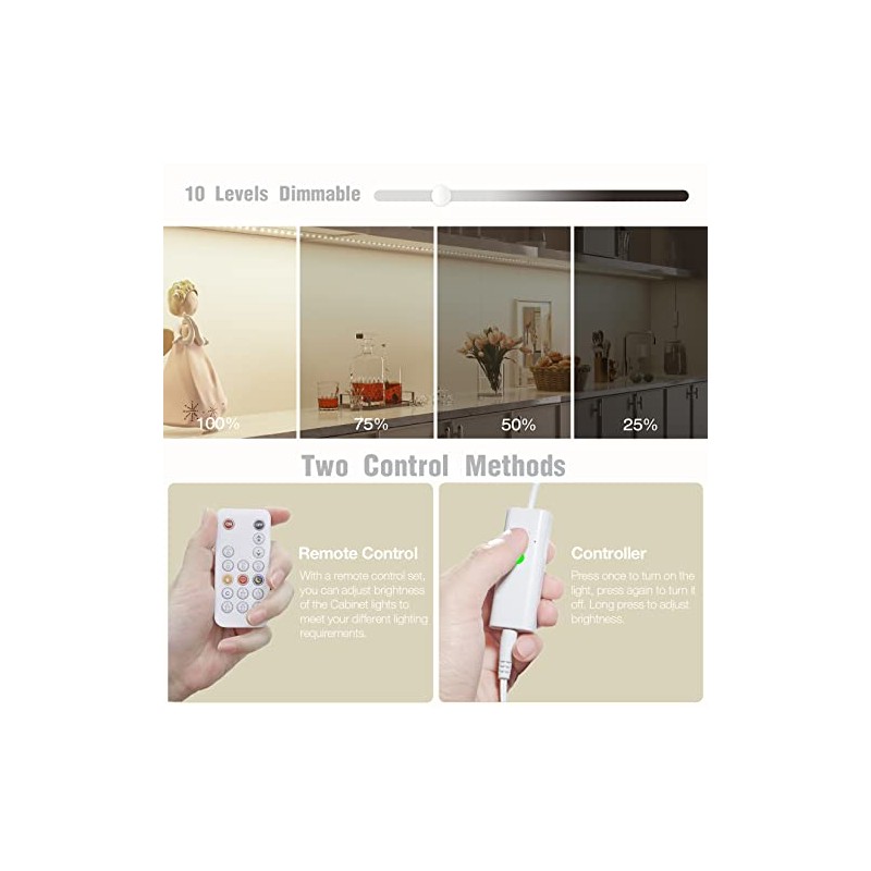 • Super Bright & Brightness adjustable: Super bright LED cabinet lights delivers total 1900 lumen, Came with RF dimmer to adjust the brightness