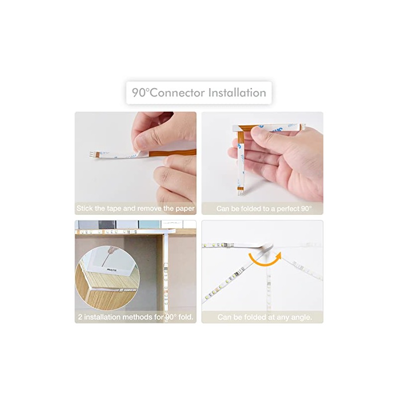 • DIY LED light strip: 8 PCS pre-cut strips, total 4 m, many kinds of connection option. Extra 2 x 50 cm + 4 x 17 cm straight connectors, It is good for connecting long-distance cabinets, like passing through microwaves, windows, and so on