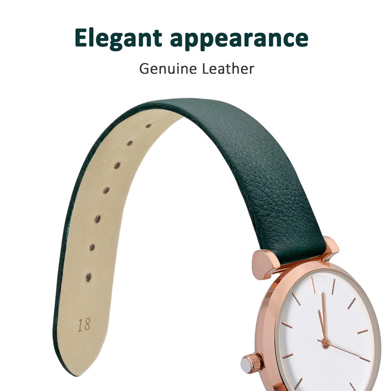 WOCCI 16mm Lug Width, Elegant Watch Band, Genuine Leather Replacement Strap with Gold Buckle (Dark Green)