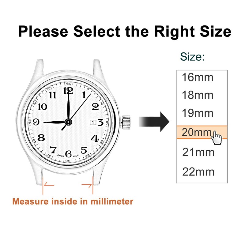 Suitable for most traditional watches and smart watches which lug width is standard 16mm, 18mm, 19mm, 20mm, 21mm, 22mm, 24mm. (Not for special design watch lug)