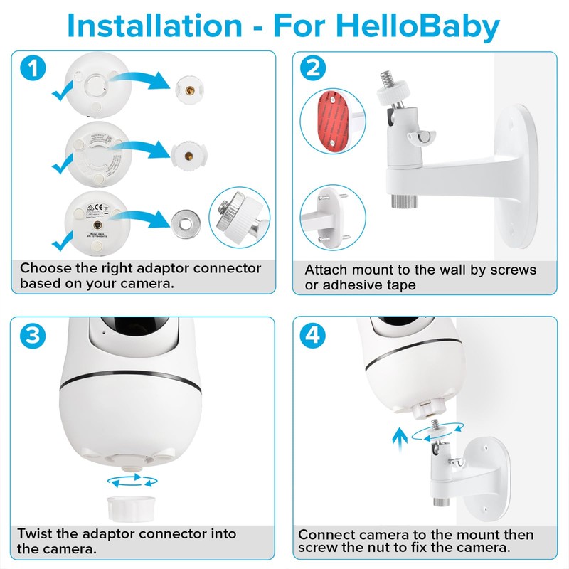 • CompatibilityEspecially designed for hello baby monitor HB65/HB40/HB6550/HB66/HB6339/HB6550 Pro, ANMEATE SM935E, and also fit other baby cameras with standard 1/4 threaded hole.(NOTE: Please check your camera carefully before shopping)