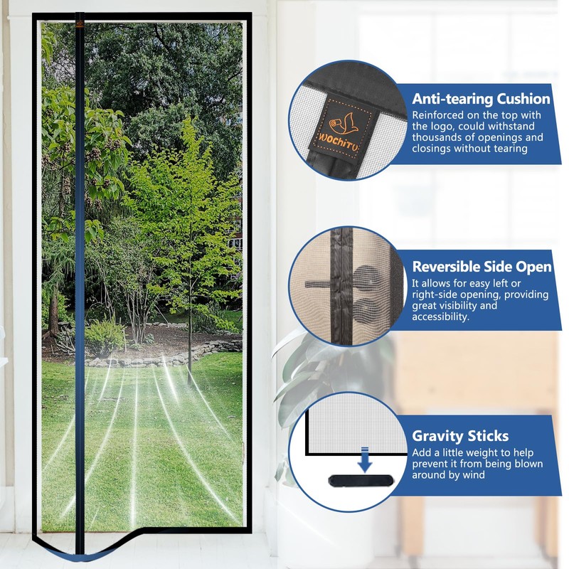WochiTV Reversible Screen Door Mesh Fits Door Size 36 x 83, Left Right Side Opening Magntic Screen Door Screen Size 38" x 85", Top Anti-Tearing Mesh Net Curtain with Magnet