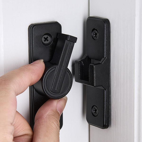 - 【Versatile Applications】— Suitable for a wide range of doors, including bedrooms, balconies, garages, windows, barn doors, sliding doors, kitchens, gardens, bathrooms, cabinets, drawers, pet enclosures, offices, and hotels. This barn door lock is an essential safety measure to protect children and pets indoors.