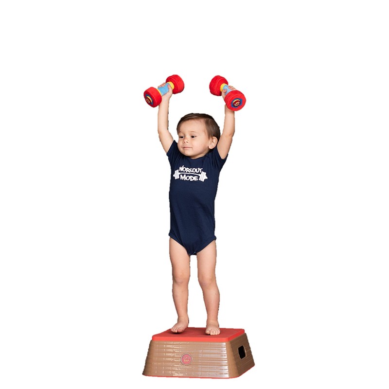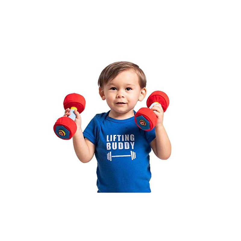WOD Toys Baby Dumbbell! Made with soft hug-able materials that's safe for your newborn or infant. Comfy plush handle with crinkle sound and texture when squeezed. Soft Dumbbells with rattle and stitched hex design to keep baby entertained. Great for newborn pictures, or a perfect way to tell the world that your baby is arriving!