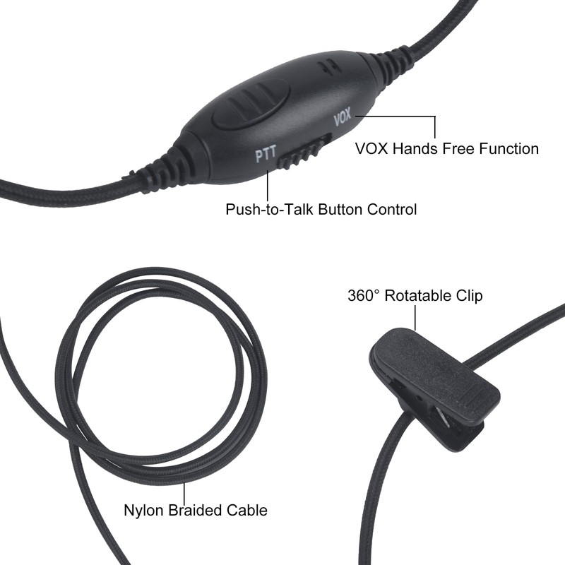 - 【Boom Mic&PTT VOX Function】Rotated and adjustable boom mic with noise-reducing sponge can be adjusted to a appropriate distance for the clear voice transmission. With VOX push-to-talk function, the radio headset can be easy to operate the PTT switch. Real hands free feature makes the control of the headset more convenient.