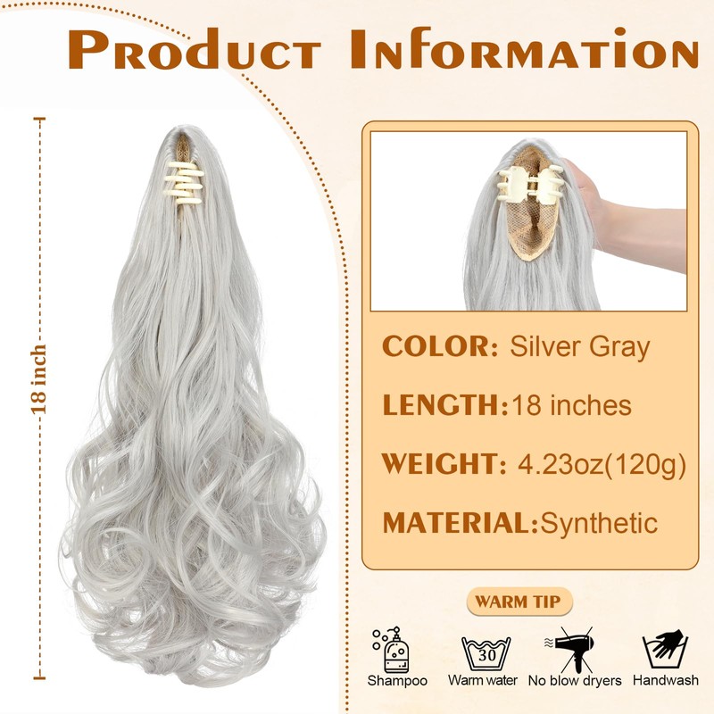 Wodelanle Ponytail Extension 18″ Claw Wavy Curly Clip in Ponytail Extension Natural Looking Synthetic Pony Tails Hair Extensions Hairpiece for Women - Silver Gray