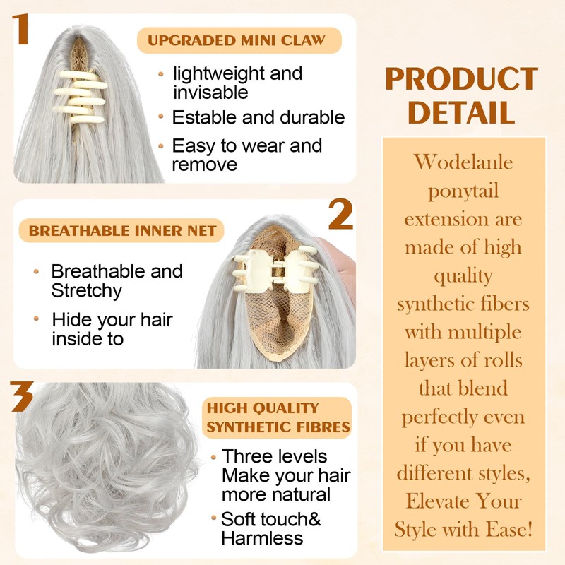 - 【Advantages】Wodelanle long ponytail hair extension combines an upgraded claw clip with a comfortable and breathable interior mesh. The excellent design of Ponytail Extension ensures a perfect and secure connection that won't tangles and fall out,,So you can easily have a long ponytail hairstyle