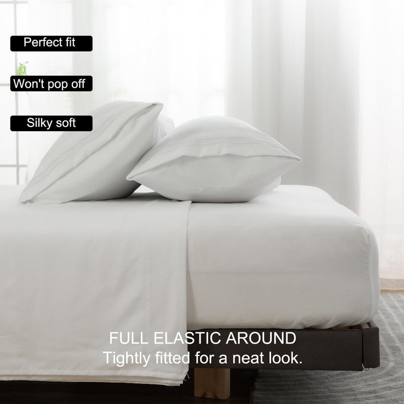- 1.High Quality Brushed Microfiber : Wodfamy Luxury Four-Piece bed sheet set is made of 100% double-brushed microfiber polyester .Fully elastic fitted sheet with durable elastic band can cover the bedside all the time.