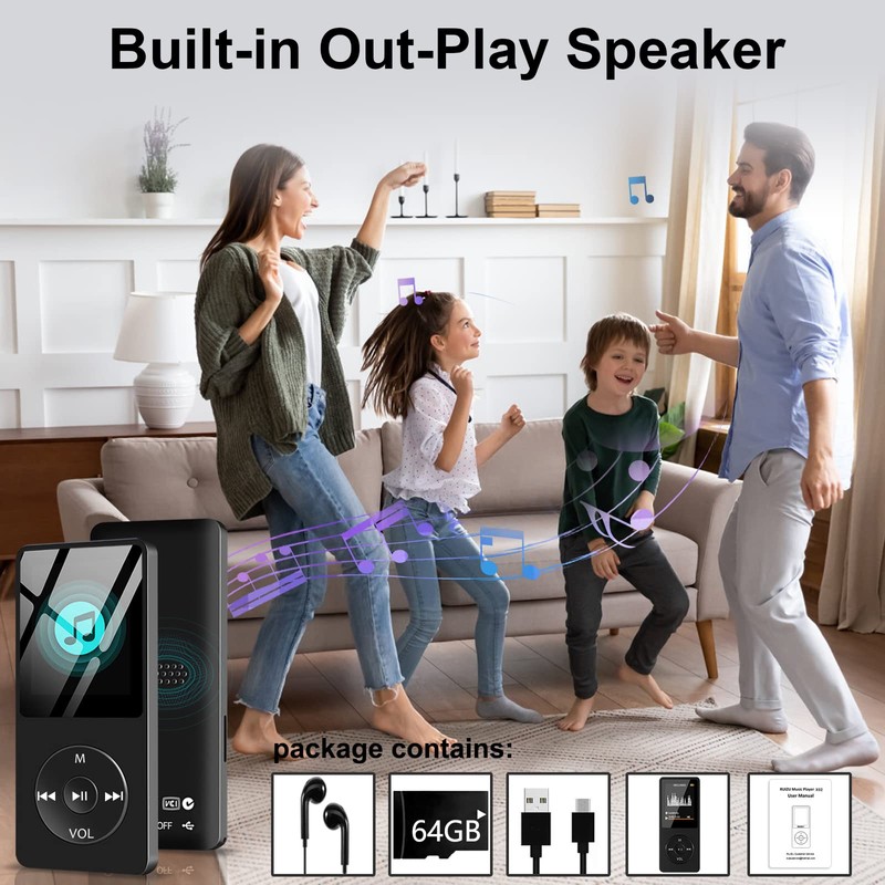 - 64GB Large Memory - MP3 Player come with a 64GB Micro card, which can store more than 10,000 songs. Can be expandable up to 128GB, you can store thousands of songs or audiobooks without breaking a sweat.