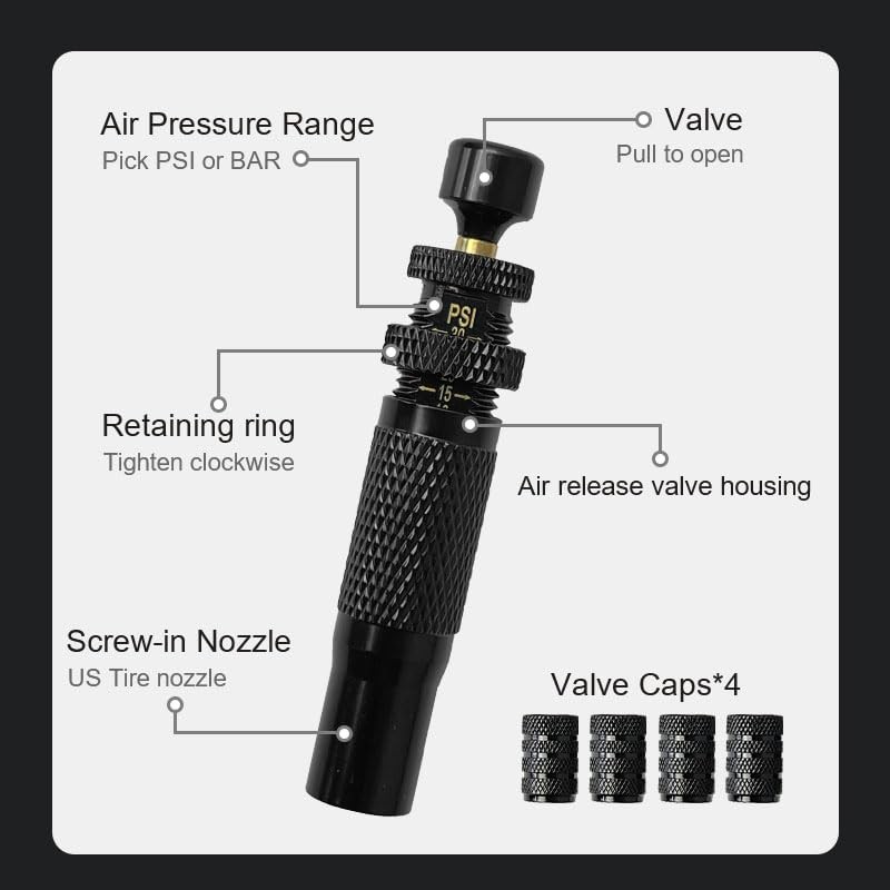 - [Switchable Pressure Units] The tire deflator valve kit offers psi or bar options for easy reading, eliminating the need for conversions.