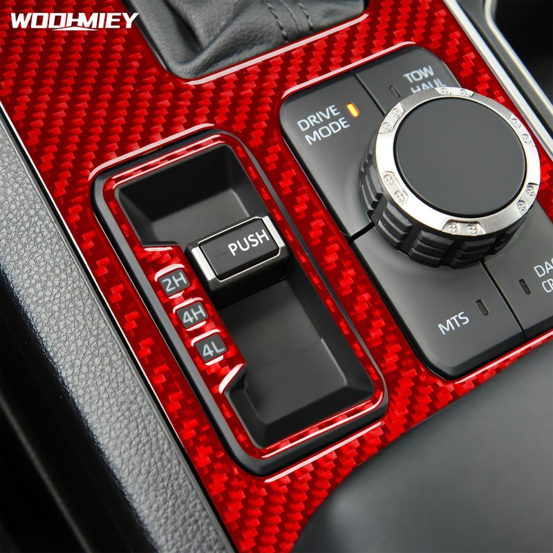 WODHMIEY Central Control Gear Shift Panel Cover Trim, Gear Shift Panel Trim Replacement, Decorative Sticker for Tundra Sequoia 2022-2024, Carbon Fiber Material (Red, with 4WD)