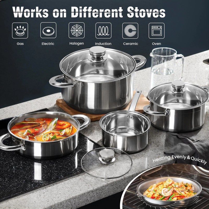 【Versatile Stovetop Compatibility】 Our cookware set is compatible with all stovetops, including induction, ensuring flexibility and efficient heat transfer for professional cooking results with your pots and pans.