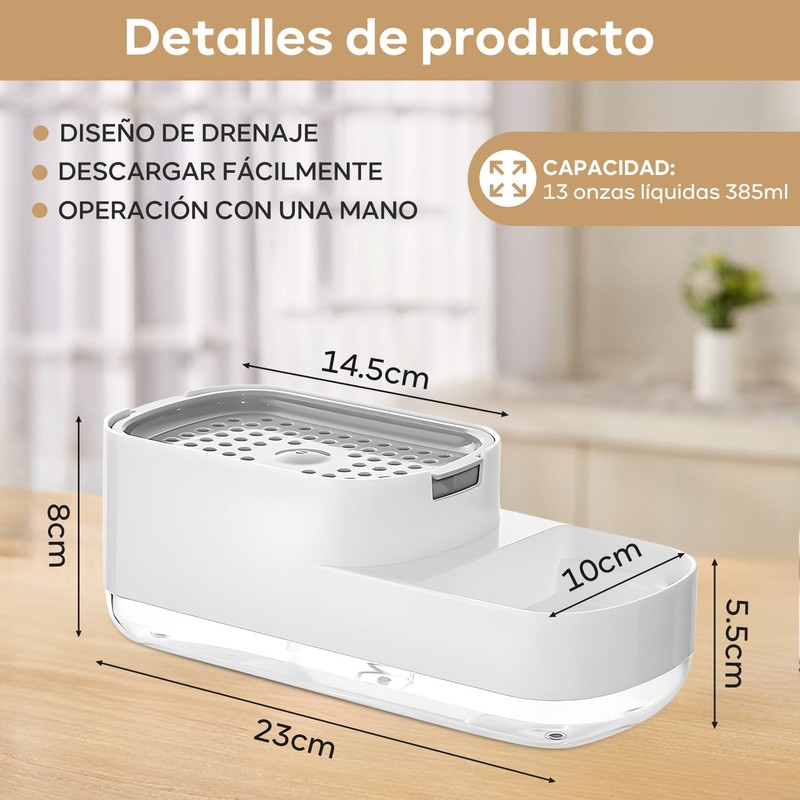 - 【DISEÑO INNOVADOR】: Desarrollamos un nuevo diseño que permite extraer el jabón con una mano simplemente presionando suavemente la esponja sobre la bandeja. Olvídate de movimientos incómodos y desperdicios de jabón, ahora podrás dosificar de forma precisa y práctica.