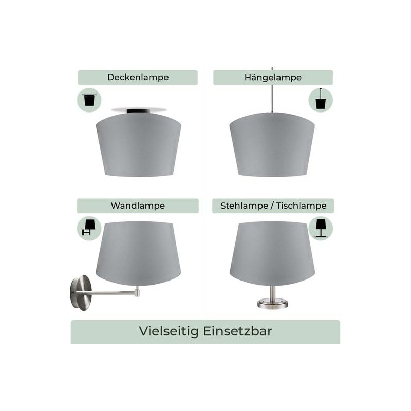 Wogati® Premium Lampshade, E14/E27, Cotton, Various Sizes and Colours, Colour: Grey, Size: XXL, Lampshade for Floor Lamp, Hanging Lamp, Table Lamp