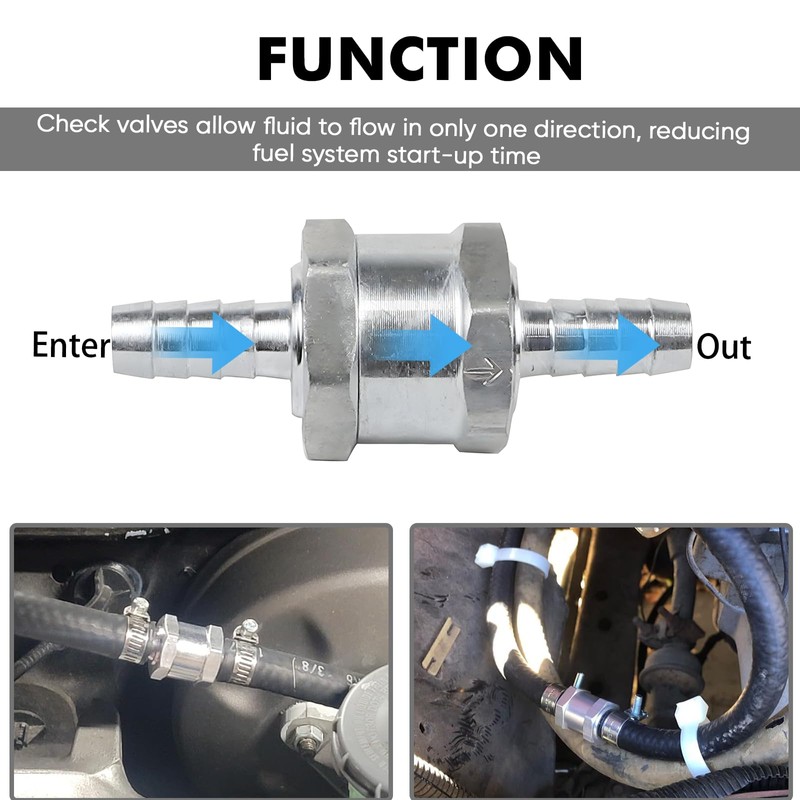 - 【Widely Applicable】: This one-way check valve is suitable for the fuel system of cars, boats, motorcycles, lawnmowers and other vehicles for water, gasoline, diesel, oil and other fluids but not for methanol. It can effectively improve the aging fuel system problems of old vehicles, and avoid failures of new vehicles.