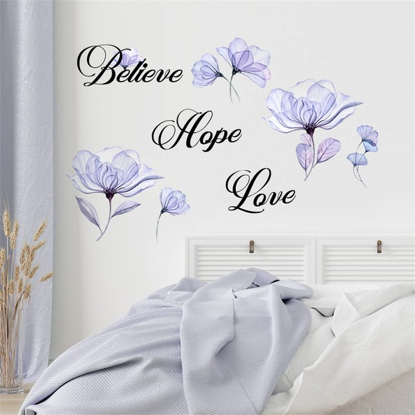 WOHAHA Inspirational Wall Decals Quotes Believe Hope Love Wall Stickers Motivational Word Letter Decals Wall Art Decorations Removable Flower Positive Sticker for Girls Bedroom Living Room Decor