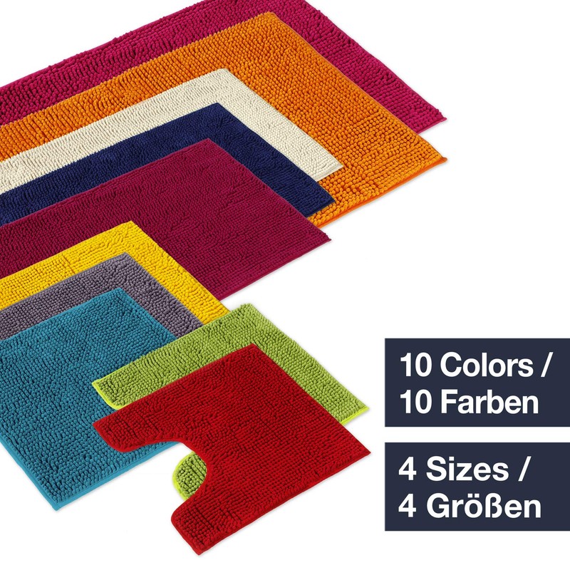 - Feel-good factor: Your warm and cuddly soft islands in the bathroom. The fine high-pile polyester microfiber of the bathroom mats gently cuddles your feet with every touch of your foot. A comfortable, warm and secure feeling even in bathrooms with underfloor heating. Available in various sizes and colours.