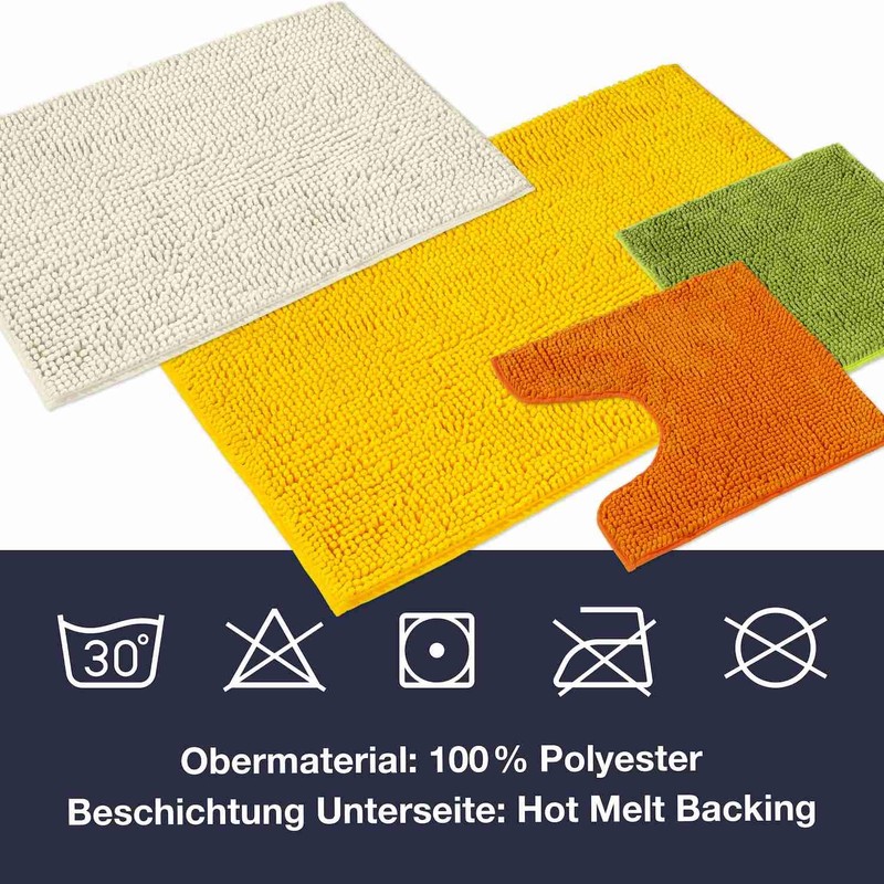 - Washable and easy-care: to ensure that nothing else remains stuck in the bath mats, the bath mats & rugs can be washed in the washing machine at 30 °C and then tumble dried. Simple and uncomplicated. Hygienic washing and drying.