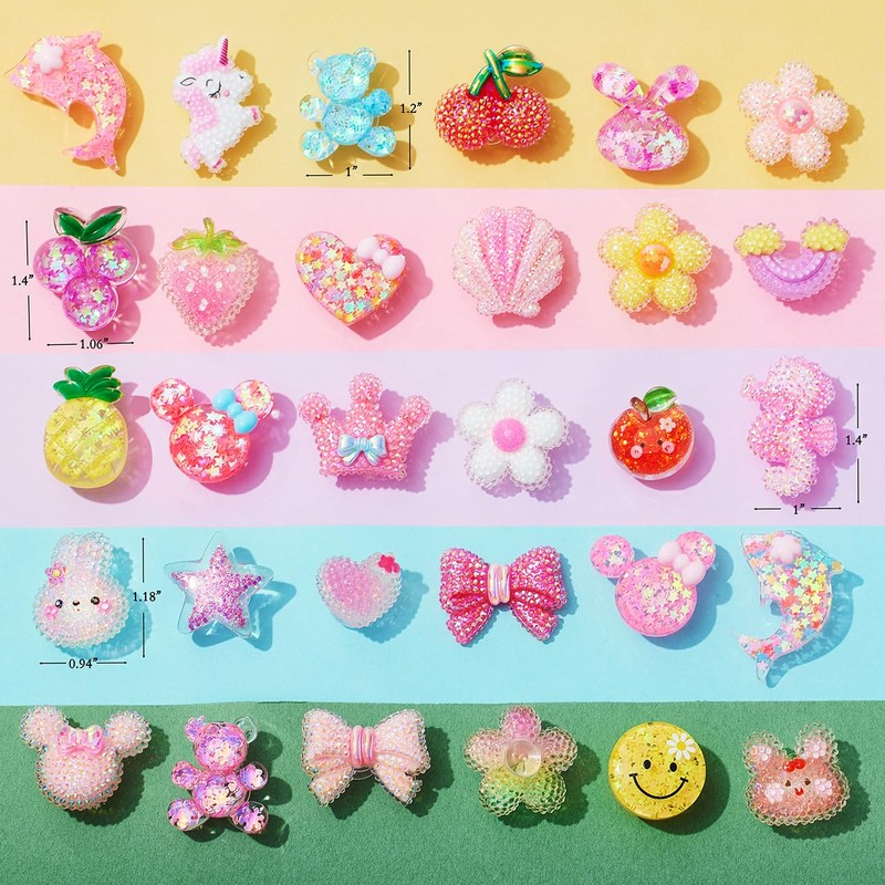 - Charming Shoe Charms: You'll get 30pcs unique Bling fashion shoe charms, each Croc charms is worth collecting. They include popular themes such as cartoon characters, anime, sports, summer, etc. With their vibrant colors and cute designs, these accessories are irresistible to kids of all ages.