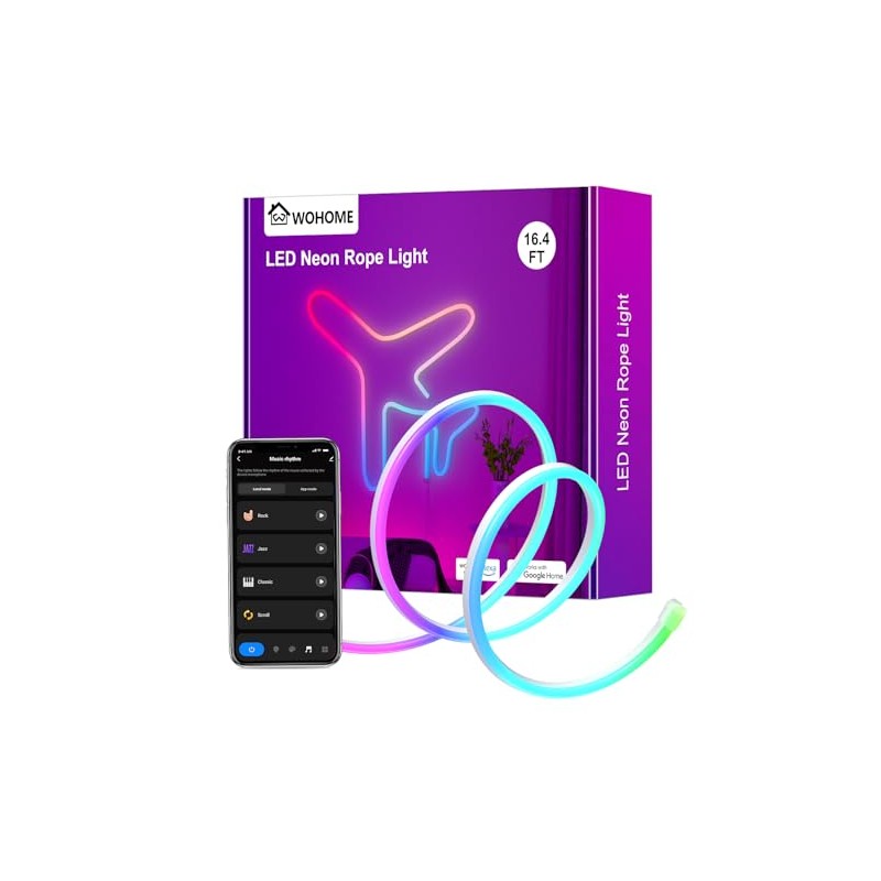 Wohome Smart WiFi RGB-IC LED Strip Neon Rope Lights Support APP/Remote/Button...