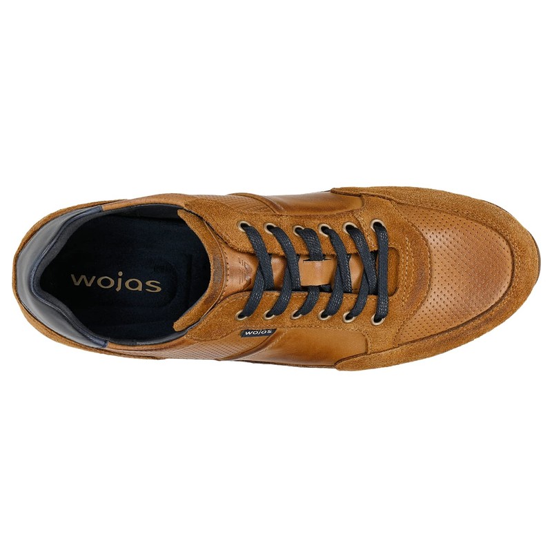 WOJAS - Men's Trainers I Leather I Soft Lining I Dark Blue Accents I Practical and Comfortable I 10051, Light brown, dark blue