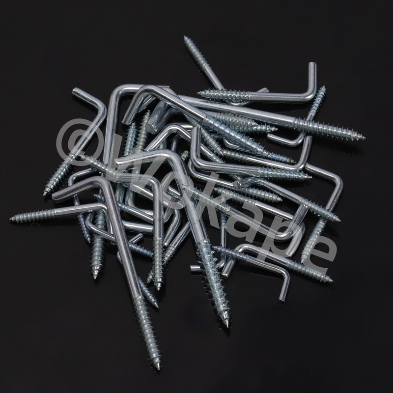 - 【Easy to Install】:The sharp, self-tapping threads make installation a breeze—no excessive force needed! These 90-degree screw hooks start easily in wood, drywall, or ceilings and grip tightly once in place, ensuring your items stay securely hung. The L-shape design provides secure holding power once installed.