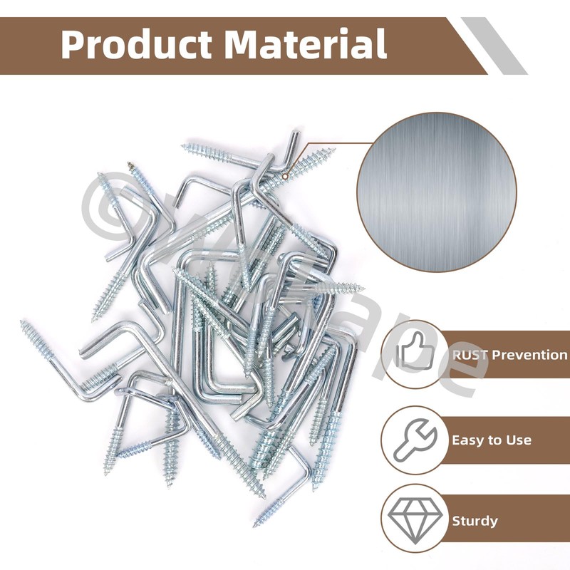 - 【Wide Applations】: Ideal for home, office, workshop, or outdoor use, these L-shape screw hooks are perfect for hanging plants, lights, cups, keys, tools, lantern, festival decoration, etc. Whether you’re organizing your garage or decorating your patio, these heavy-duty L hooks are your go-to daily assistant.