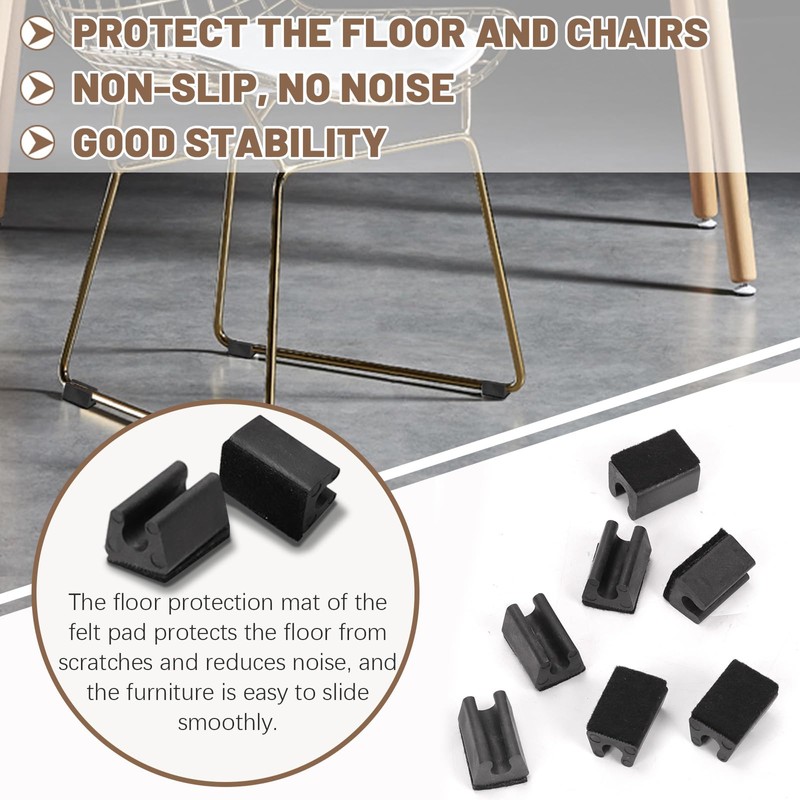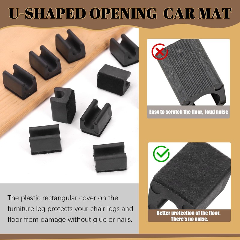 - 【Special Design】We apply the special design on these u shaped chair legs, which is u-shaped design and the non slip-design, u-shaped design make these floor protectors easier to install by hand with no other install tools. Every floor protectors are equipped with self-adhesive felt pads them with a good non-slip effect, giving both the furniture and the floor good protection.