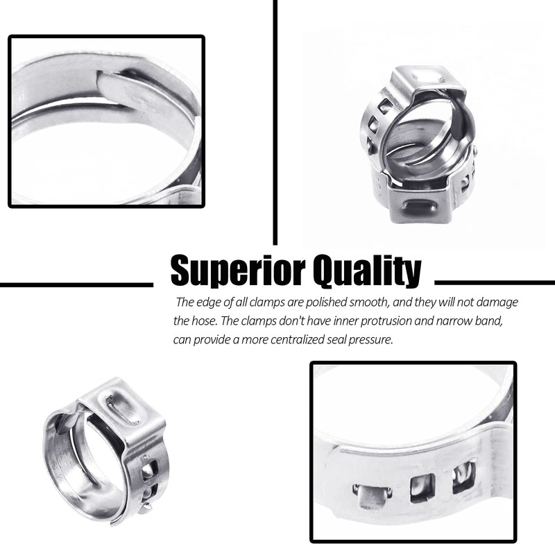 - ❥Seal Protection----- These hose clams can provide a fast and reliable connection for pipes, and form a 360 degree watertight seal. The clamp concentrates seal compression, and inner circumference assurance the hose uniform surface compression,the clamping effect is obvious and stronger. The edge of all clamps are polished smooth, and they will not damage the hose. The clamps don't have inner protrusion and narrow band, can provide a more centralized seal pressure.