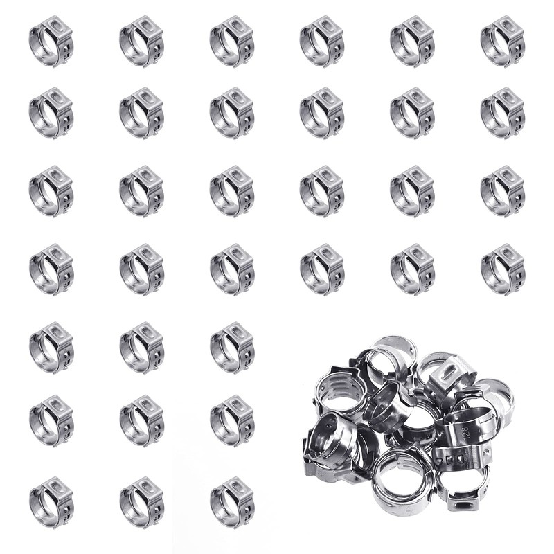 Wokape 50Pcs 10.3-12.8mm Single Ear Hose Clamps, 304 Stainless Steel PEX Pinch Clamps Cinch Rings Crimping Tool Stepless Hose Clamp for Securing Pipe Hoses and Automotive