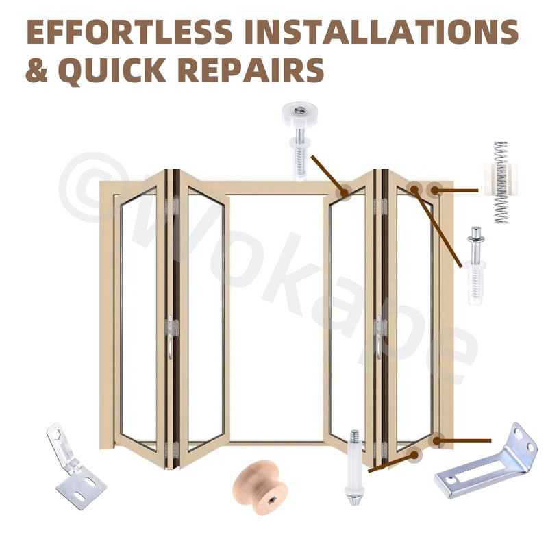 - 💥【Easy to Install】------- The Wokape bi-folding door repair parts kit offers a wide range of standard sizes, safe materials, and durable parts, and each package includes detailed installation instructions for easy installation, adjustment, and repair, increasing user satisfaction and comfort.