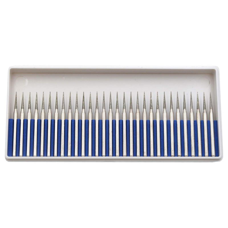 Wokesi 30Pcs,3/32"Shank Diamond Burrs Set Burs File Taper Points Grinding Head Fit Bits Set 150#Grit for Jewelry,Glass,Stone,Ceramic,Gemstones Lapidary (T7 3/32 Inch shank)
