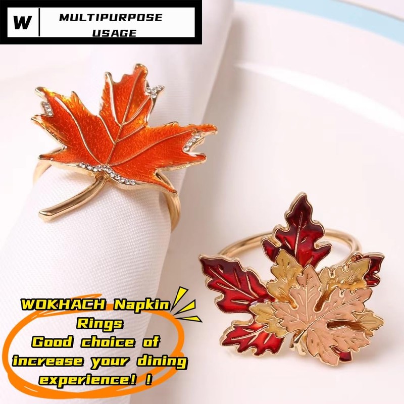 WOKHACH Decorative Napkin Rings Set of 6, Holders for Dinner Party, Wedding, Anniversary, Birthday, Table Decor Gift (Red Maple Leaf)