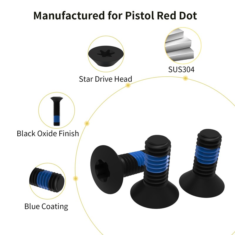 - Applicable scenarios:Wokonl Red Dot Screws attach your red dot to slides or adapter plate effortlessly. Perfectly compatible with Glock and other mainstream pistols. Please check your hardware specs for confirmation before purchasing
