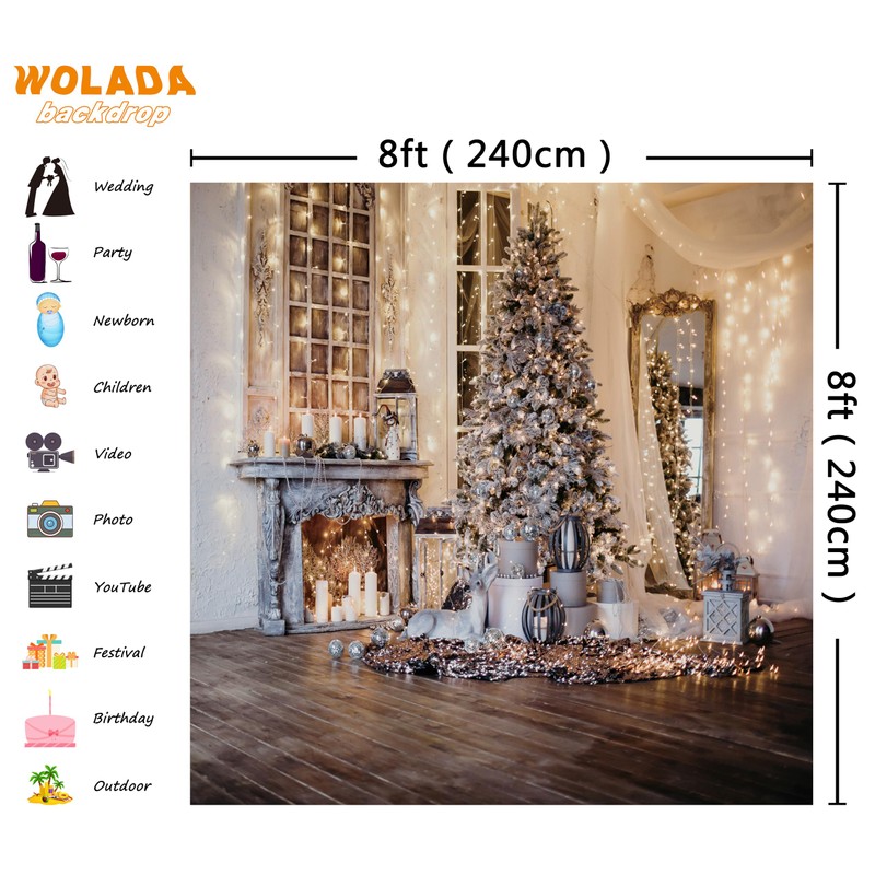WOLADA Christmas Backdrop Christmas Photo Backdrop Fireplace Backdrop Merry Christmas Backdrop Christmas Backdrops for Photography 8x8FT 11715
