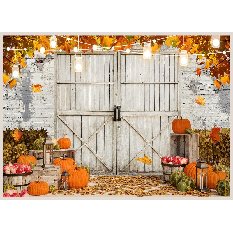 WOLADA Fall Backdrops for Photoshoot Autumn Backdrops for Photography White Barn Door Backdrop 10x8FT FW122