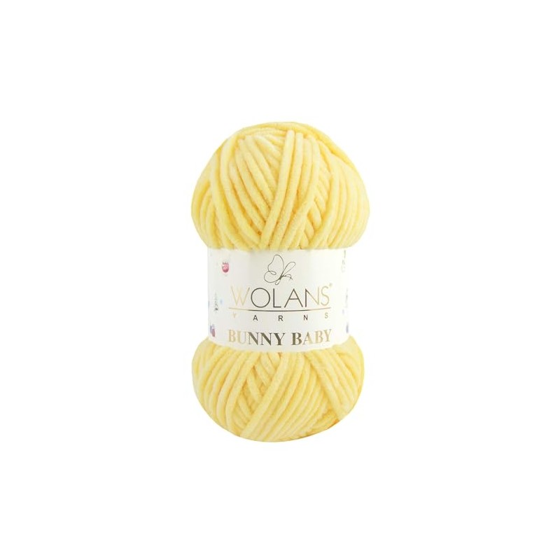 Wolans Bunny Baby Chenille Style Yarn Wool 70 Colours Available 100g Balls (Lemon Col 44)