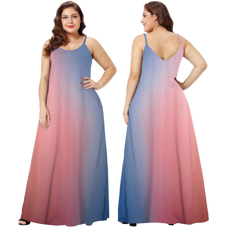 Wolddress Womens 2025 Casual Sleeveless Sundress Plus Size Loose Plain Long Summer Beach Maxi Dress with Pockets Gradient-Babyblue Pink L