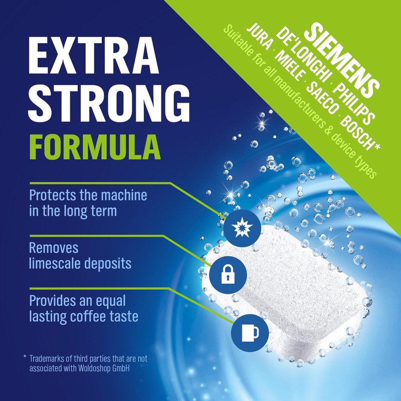 - Descaling tablets for coffee machines & kettles 20 tabs compatible with Jura, Siemens, Bosch, Miele, Melitta, Krups, Tassimo, Delonghi.