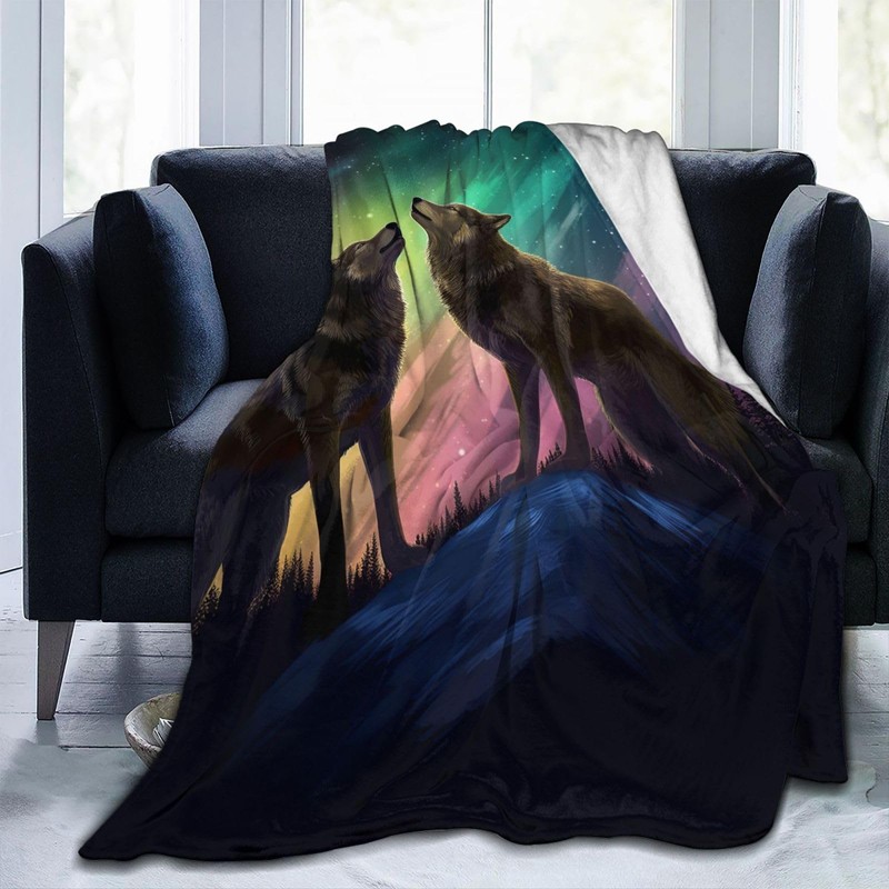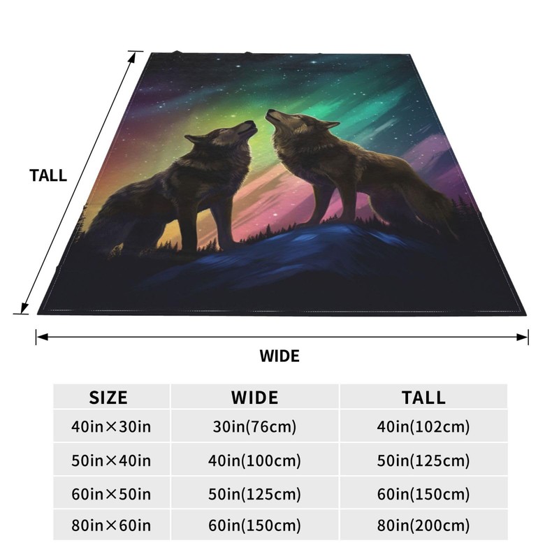 Wolf Blanket Wolf Northern Lights Decor Throw Blanket Wolf Blanket Gifts for Girls Boys Wolf Lovers Super Warm Soft Plush Lightweight Fleece Flannel Bedding Blanket for Kids Adults Men Women 50"X40"