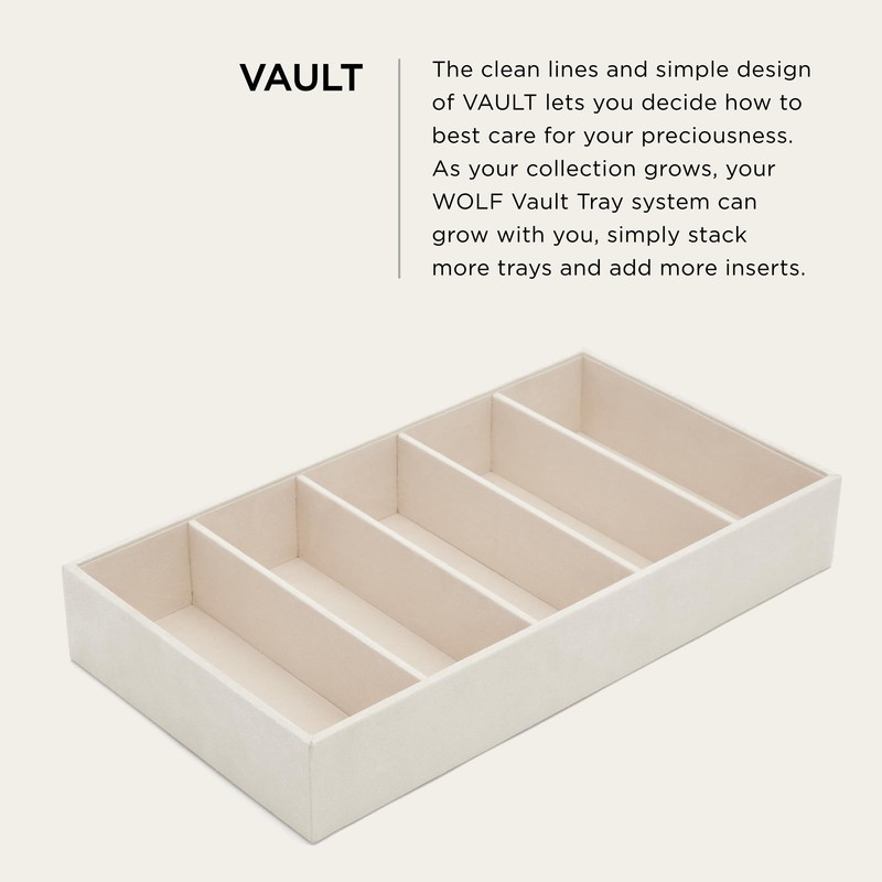 WOLF VAULT Tray Sunglass Insert, Beige - Includes 5 Compartments - Stackable - Anti-Tarnish LusterLoc Lining - Prevents Jewelry Discoloration + Tarnishing