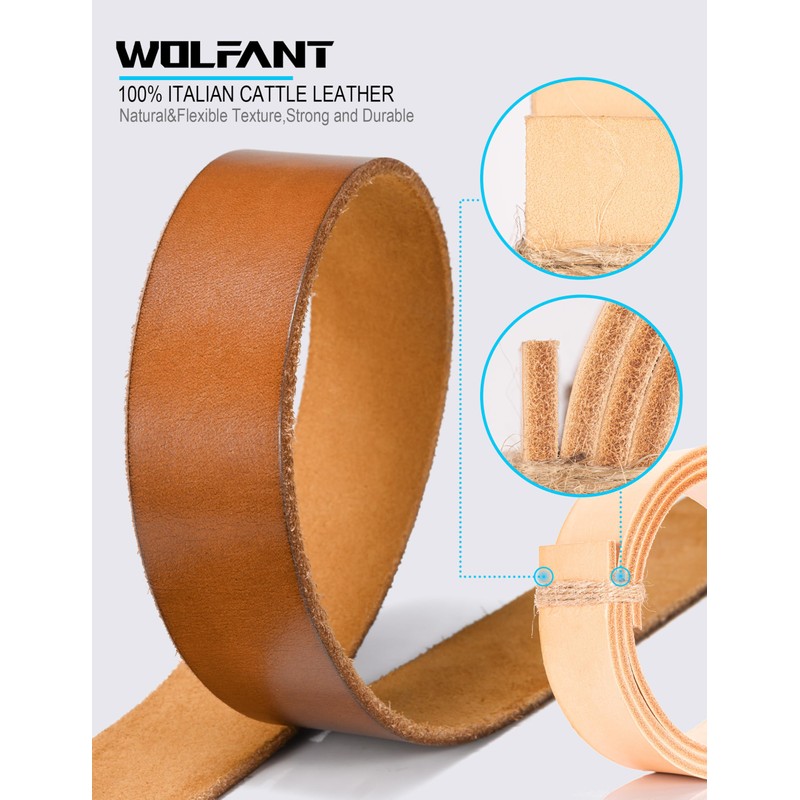 WOLFANT Handmade Full Grain Leather Casual Belts for Men,100% Italian Real So...